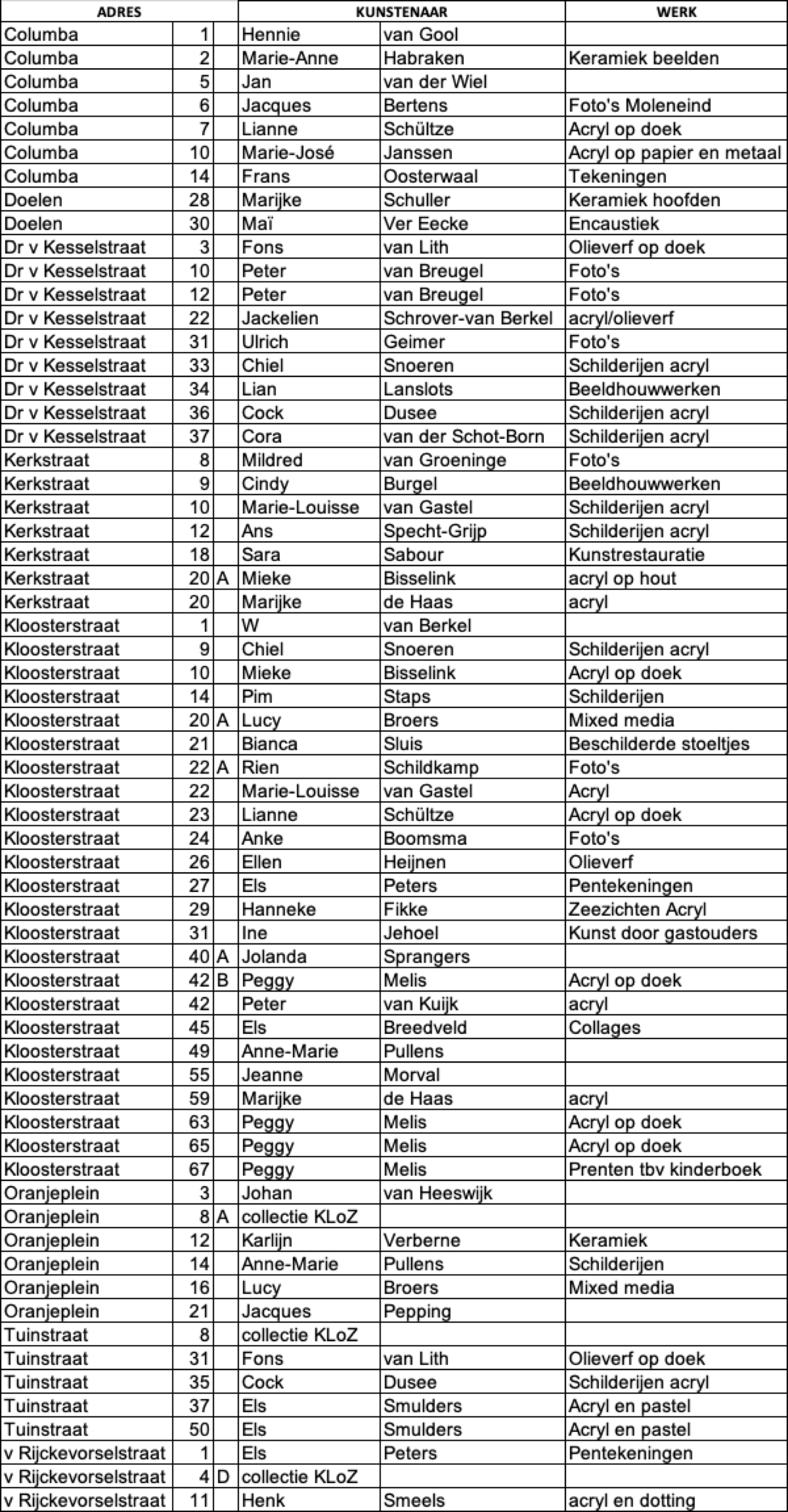 Deelnemers Kunst voor het raam 2024